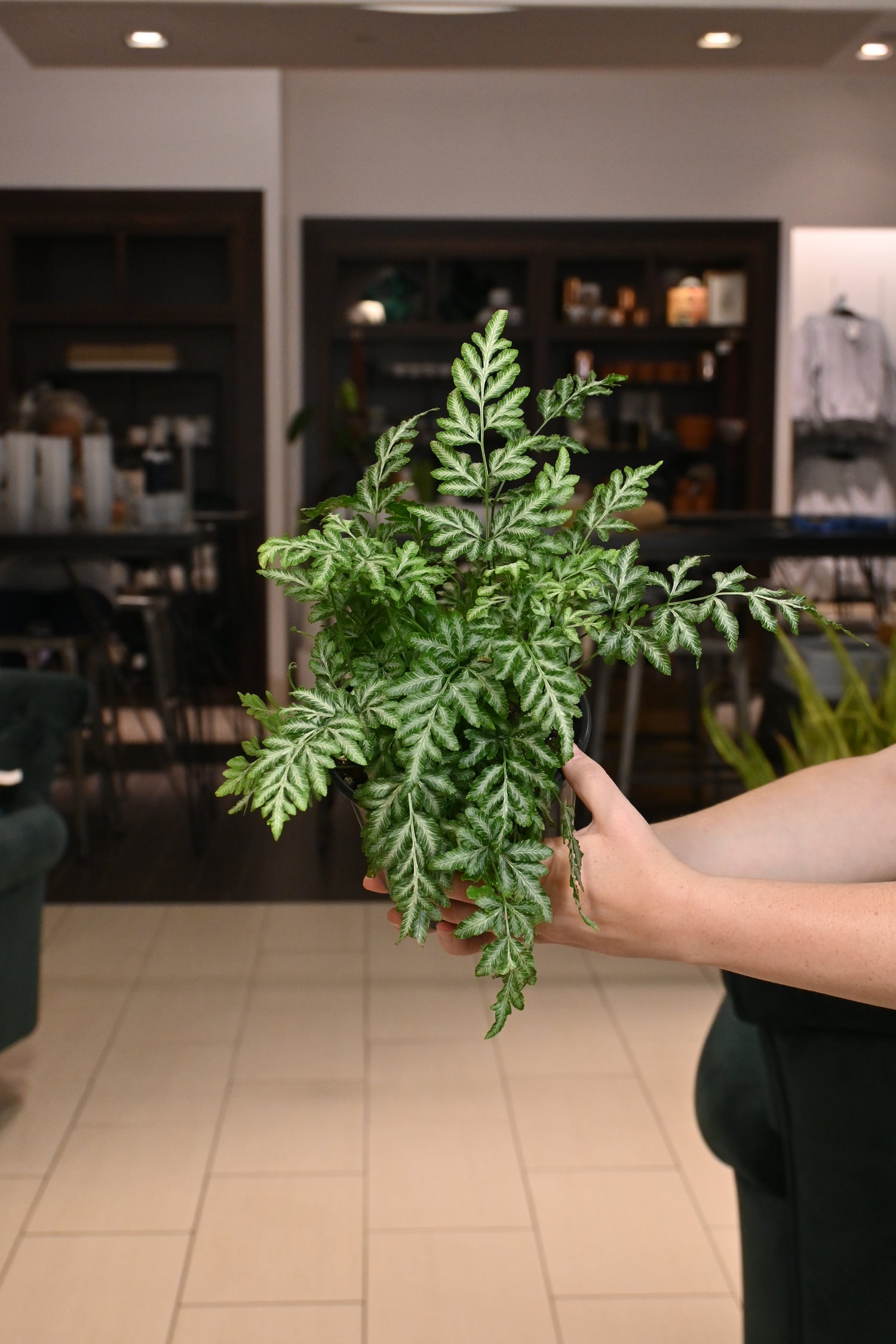 Ferns crave a lot of humidity & bright, filtered light. Allow their soil to dry out about 50% between waterings.