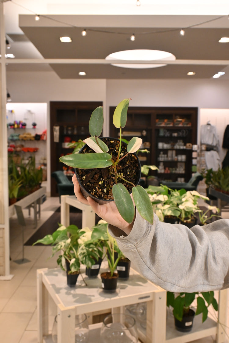 Philodendron plants are easy-going and generally forgiving with their care routine. They thrive in bright, filtered light conditions but can tolerate medium light as well. Variegated Philodendron plants crave a higher light source to help keep their variegation. Water your Philodendron when the soil is dry about 2” down from the top of the pot. Keep your Philodendron in chunky potting mix.