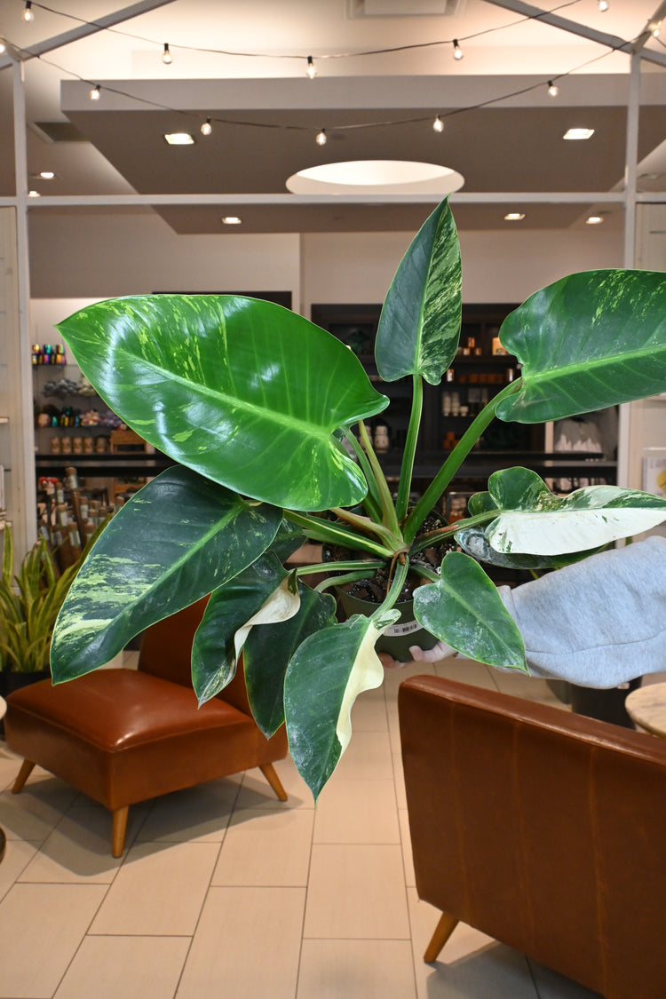 Philodendron plants are easy-going and generally forgiving with their care routine. They thrive in bright, filtered light conditions but can tolerate medium light as well. Variegated Philodendron plants crave a higher light source to help keep their variegation. Water your Philodendron when the soil is dry about 2” down from the top of the pot. Keep your Philodendron in chunky potting mix.
