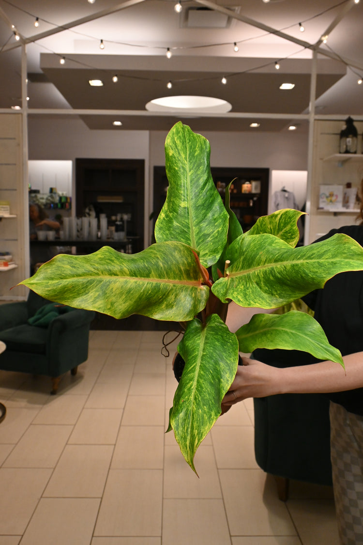 Philodendron plants are easy-going and generally forgiving with their care routine. They thrive in bright, filtered light conditions but can tolerate medium light as well. Variegated Philodendron plants crave a higher light source to help keep their variegation. Water your Philodendron when the soil is dry about 2” down from the top of the pot. Keep your Philodendron in chunky potting mix.