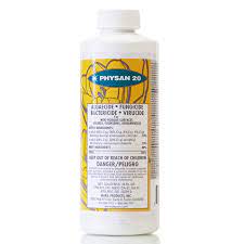 PHYSAN 20™ is a broad range disinfectant, fungicide, virucide, and algaecide which effectively controls a wide variety of pathogens on hard surfaces and plants. Its applications include greenhouses, hard surfaces, lawn and turfgrass, seedlings and cut flowers, decorative fountains, pools and birdbaths, and plants.
