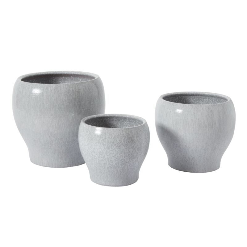 With a unique, marbled finish & classic rounded shape made in Portugal, the large ceramic Quimby Pot offers a contemporary yet timeless elegance to drop-in plants. Featuring a slightly tapered base, cool grey tone, & glossy finish with white speckling, this chic plant pot adds a dimensionality & brightness to interior design.