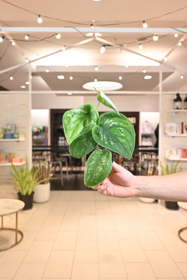 Pothos, Epipremnum, Scindapsus plants are some of the easiest out there. They can tolerate low light, and are drought tolerant. Water when the soil is dry about 50%. Keep them in a well-aerated soil.