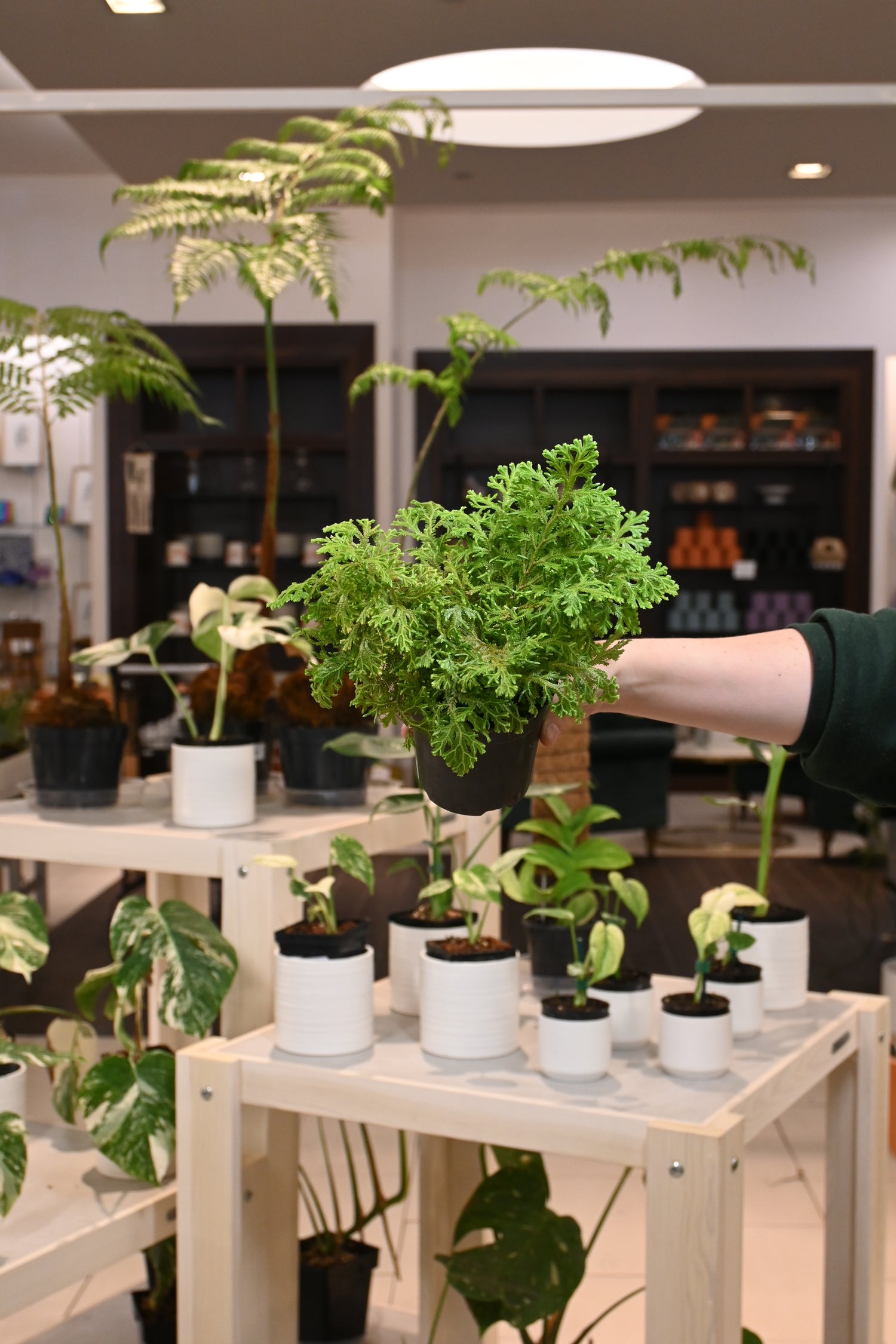 Ferns crave a lot of humidity & bright, filtered light. Allow their soil to dry out about 50% between waterings.