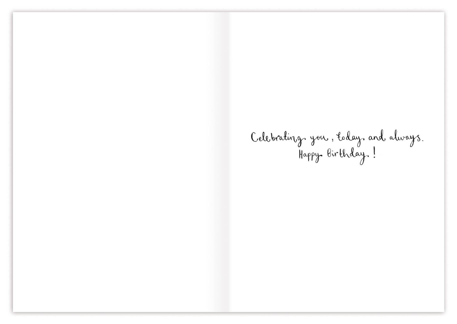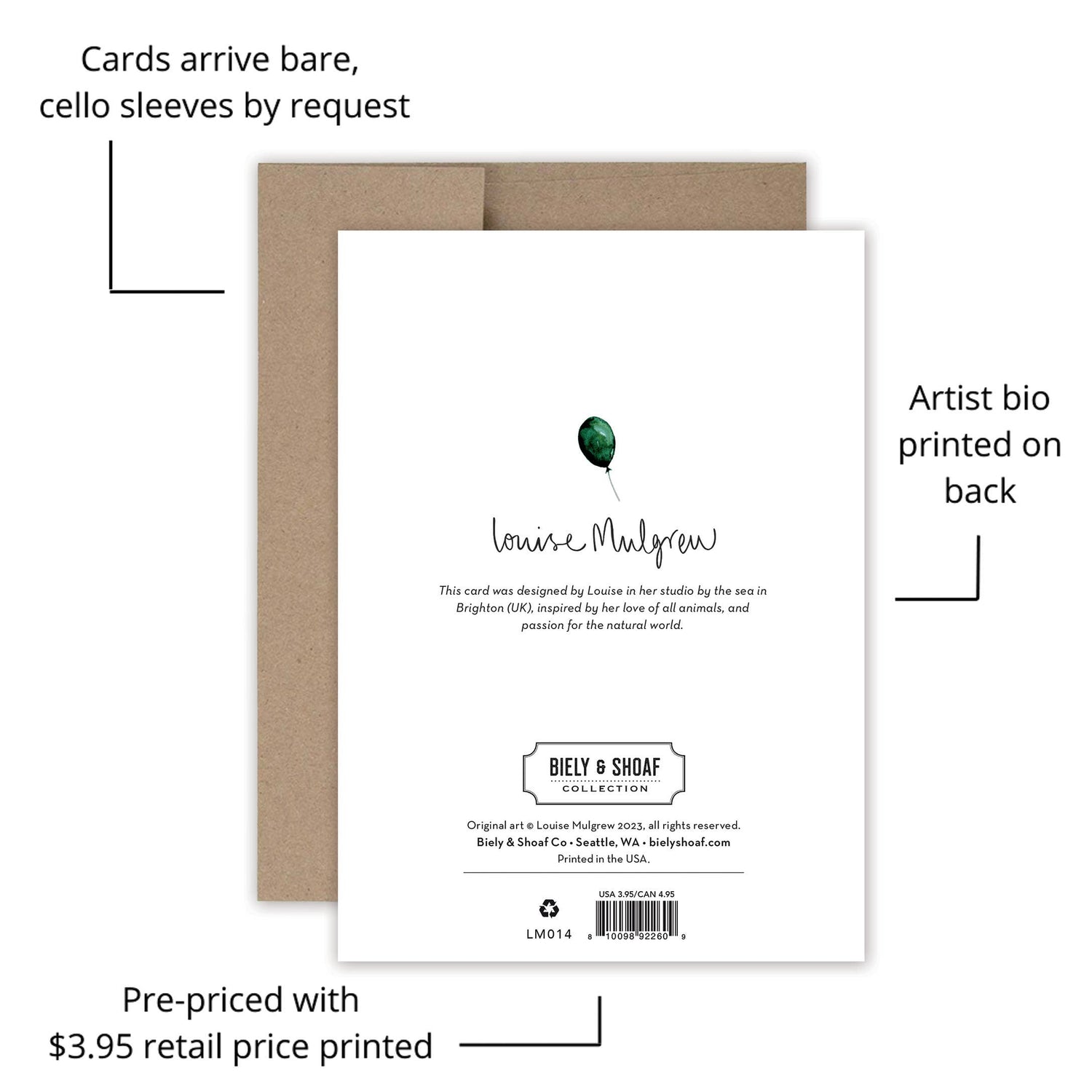 Inside verse: Celebrating you, today and always. Happy Birthday! • Size: A6, 4.6" x 6.4" • Illustrated by Louise Mulgrew • Envelope color: Kraft • Printed in the USA on high-quality recycled post-consumer waste paper