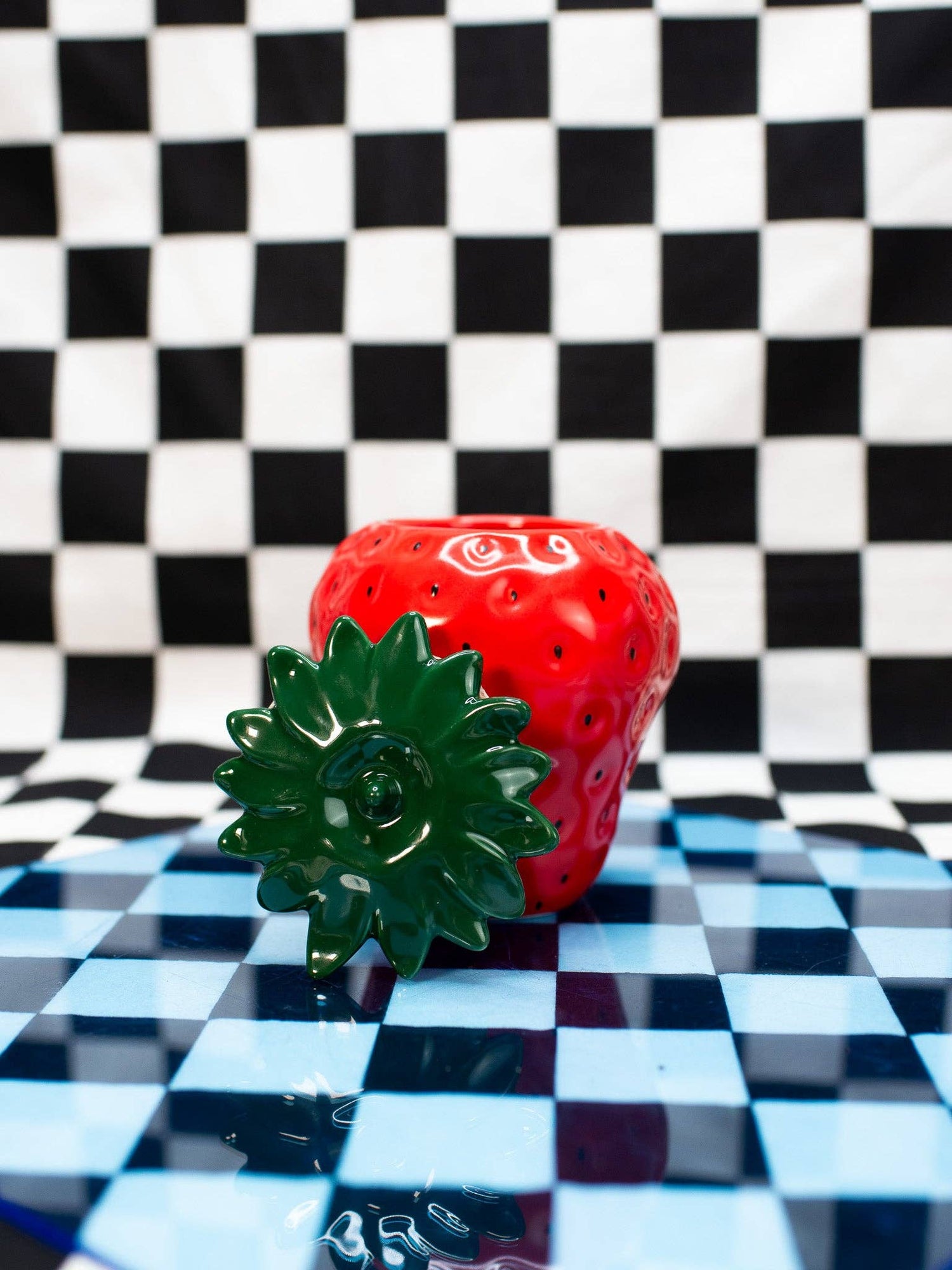 How adorable is this red and green strawberry jar? Opens from the top stem and is both cute and functional! The lid seals tightly, so you won't have to won't have to worry about whatever you decide to put inside!