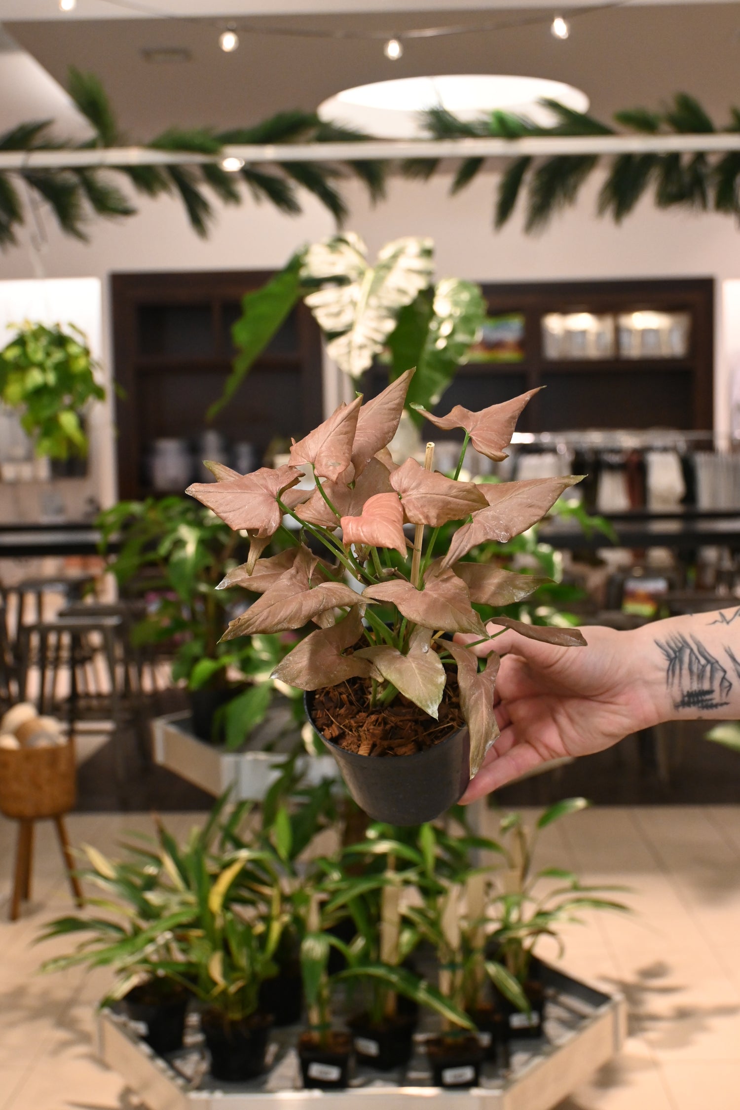 Syngonium plants are easy to care for and have a lot to offer as far as colors, patterns, and leaf shape. They thrive in medium light, a couple feet away from a window & love humidity. Keep your Syngonium in a chunky potting mix.