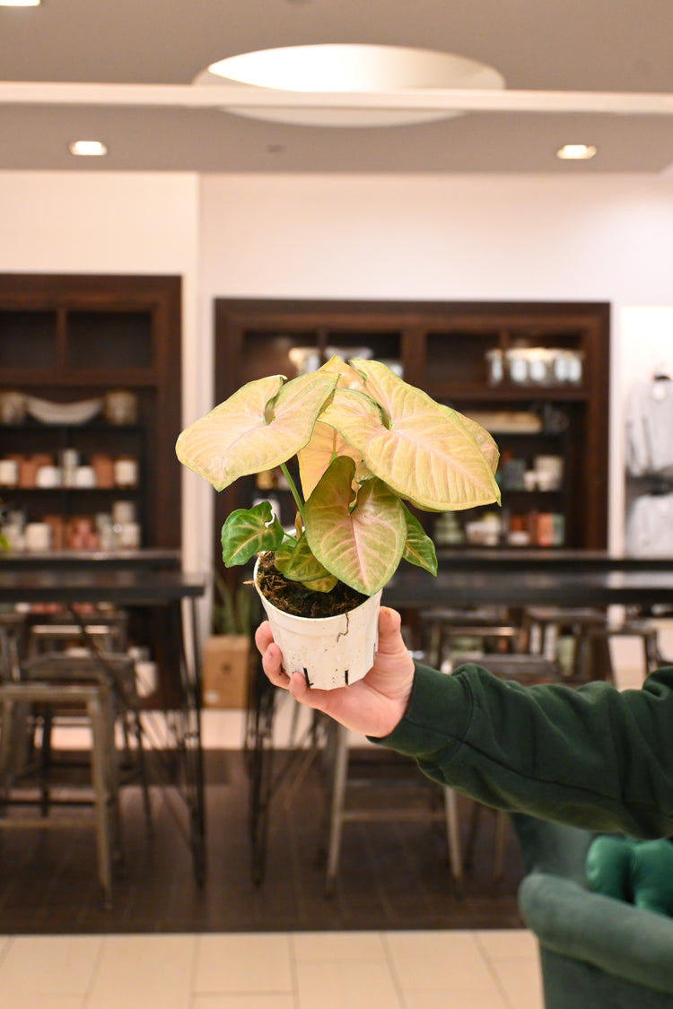Syngonium plants are easy to care for and have a lot to offer as far as colors, patterns, and leaf shape. They thrive in medium light, a couple feet away from a window & love humidity. Keep your Syngonium in a chunky potting mix.