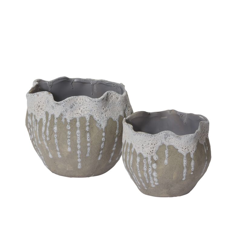 The ceramic Thalassa Pot is beach-inspired with a handmade bubble effect that gives the edges a sea foam-splashed look like waves crashing on the sand. The unique pot shape still fits drop in pots and beautifully displays fresh or dried botanicals.