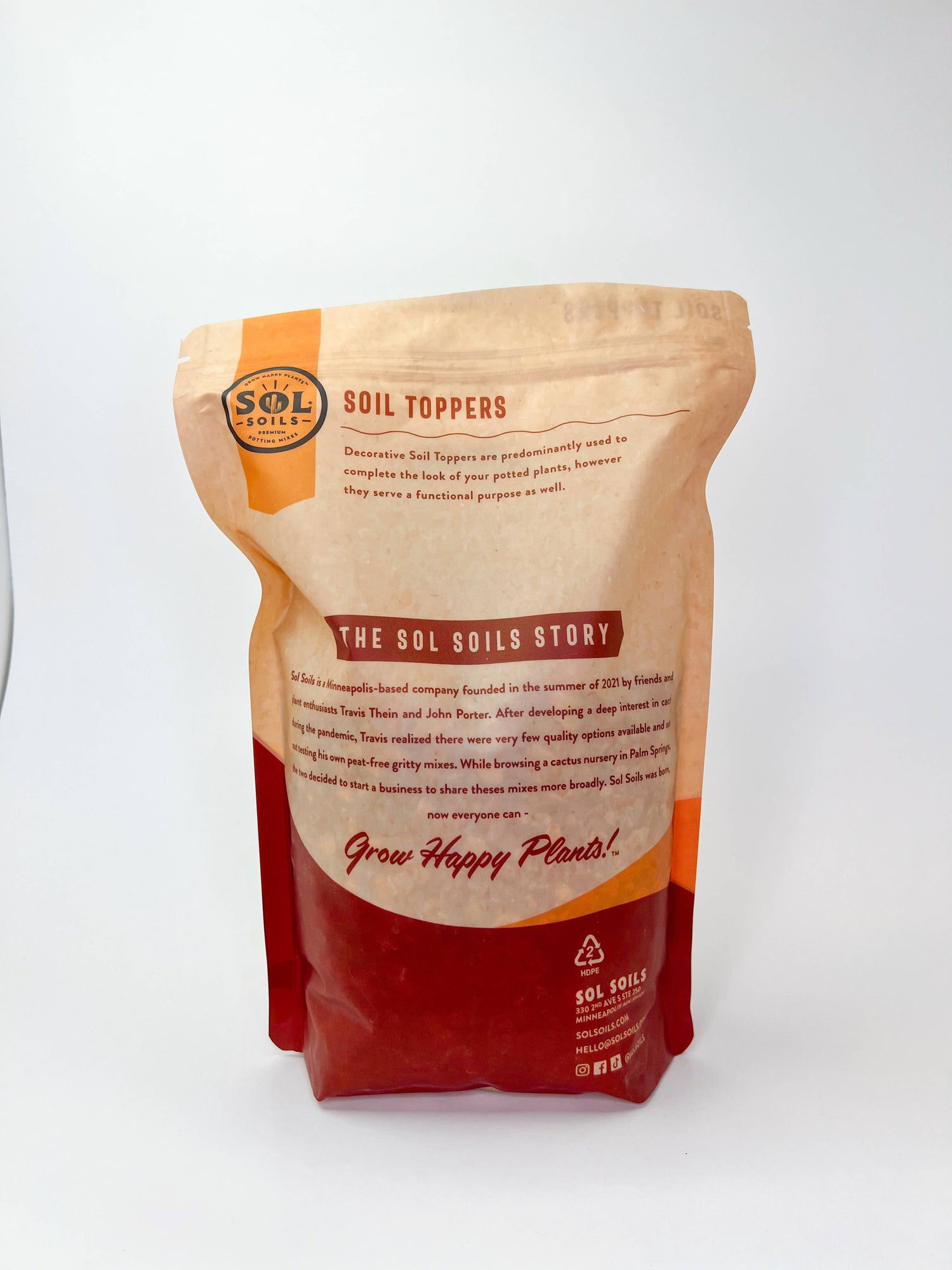 Sol Soils offers a variety of high-quality soils, soil components, and soil toppers designed for potted cacti, succulents, and houseplants. We select and hand-mix the best ingredients to produce fast draining soils that help protect against root rot, the number one killer of indoor plants. Soil toppers offer a customizable finishing touch to complement all your potted plants. Our Original Sol topper blends grey, gold, and red rock to create a unique and colorful landscape. Toppers serve as a protective layer against bugs and other pests, as well as a decorative flair for your favorite plants. At Sol Soils, we are passionate about the beauty of plants and the natural world.