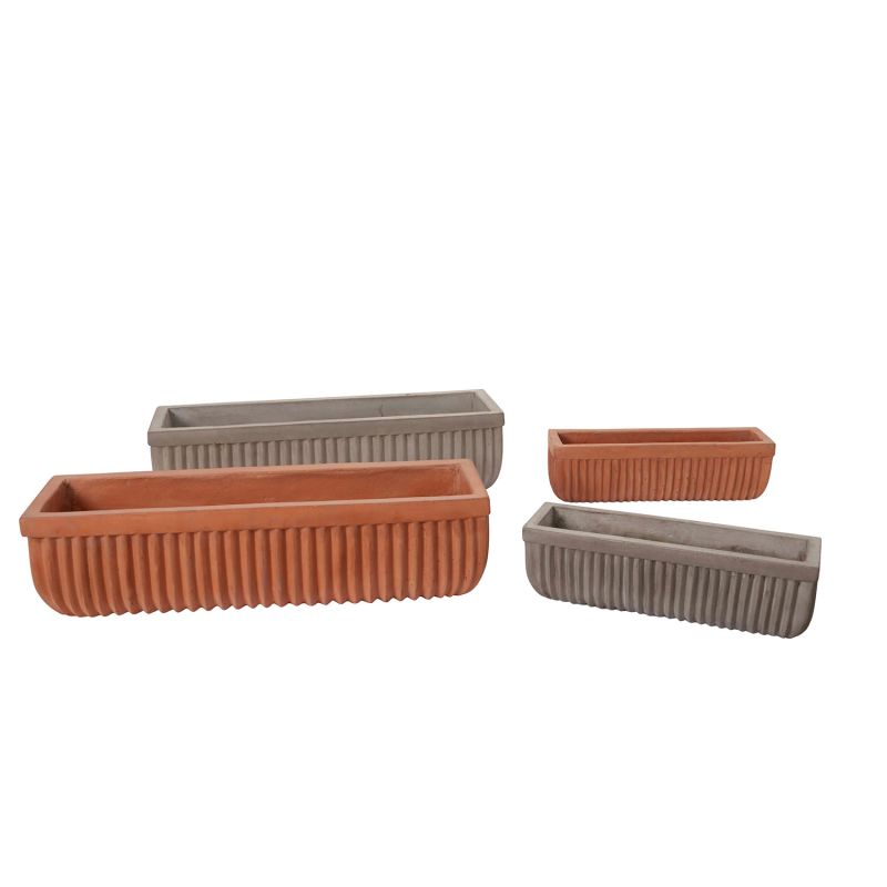 Rustic with neutral grey coloring, the Tyndall Planter creates a natural look for your porch or patio. Its long trough shape, made of a grey concrete material with a variegated design, is ideal for an herb garden or a collection of succulents.