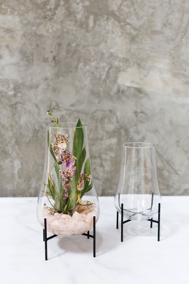 Display florals, floating candles, or a terrarium garden in this small, unique, fishbowl-style terrarium. The chic Venture Stand is handmade from cold cut glass with a rounded foot & wide bowl, ideal for a miniature garden, small bouquet, or floating candles for an event.