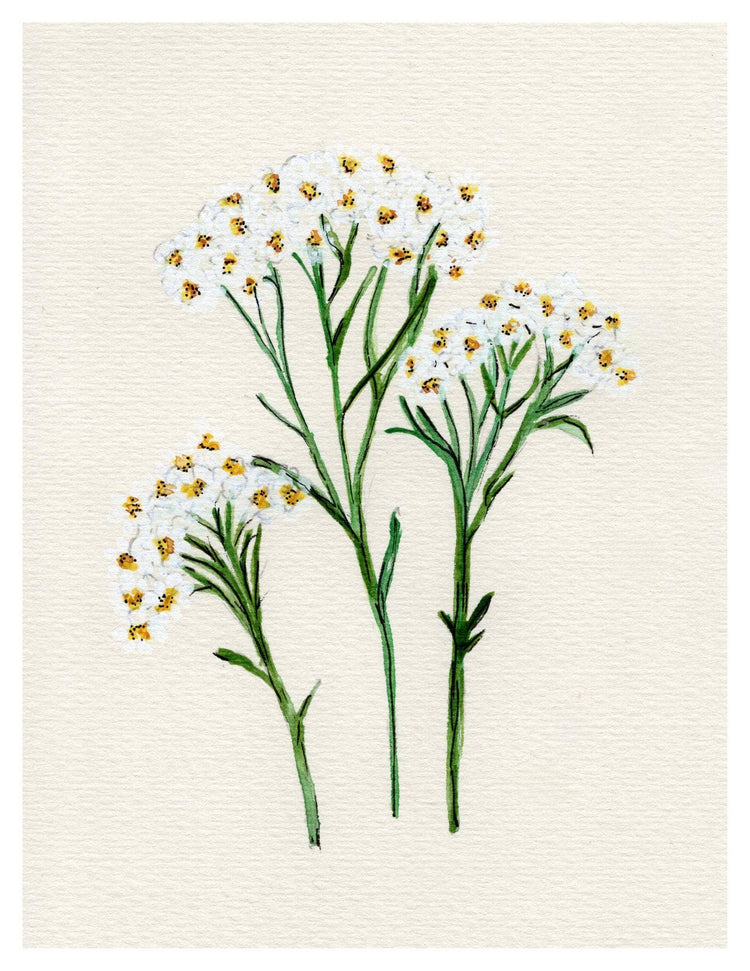 Celebrate the timeless beauty of wildflowers with this Achillea Millefolium (Yarrow) watercolor print. Known for its delicate clusters of tiny white blooms and feathery, aromatic leaves, yarrow has been cherished for centuries for both its beauty and traditional herbal uses. Thriving in meadows, prairies, and gardens, this resilient plant is a pollinator favorite. Carefully painted to highlight its intricate details, this print is perfect for nature lovers, gardeners, and botanical art enthusiasts.