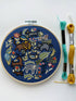 All your favorite animal friends have joined together for a fabulous forest party. Kit comes with everything you need to complete this 6” hoop: Preprinted fabric, needle, Floss and lots of embroidery tips at rickrack.com. Suitable for beginners and beyond.