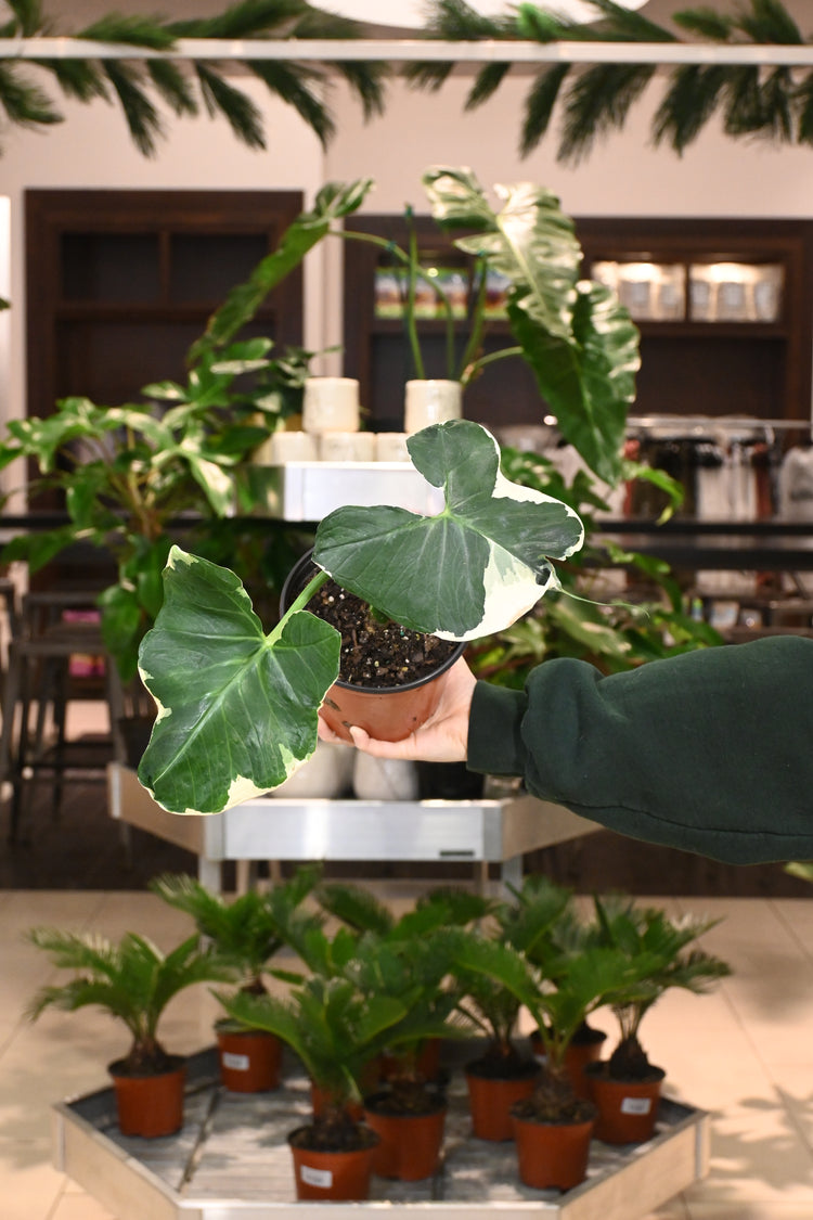 Xanthosoma Albo Marginata, also known as the mickey mouse plant, is a beautiful foliage plant with unique white markings on its dark green leaves.