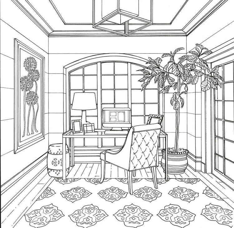 Illustrated by Joan Borawski, this book features intricate design details like built-in bookcases, patterned pillows, and ornate rugs that you can bring to life with your own color schemes. Each page is printed on white premium paper and offers countless opportunities to experiment with different looks without having to repaint a room or buy new furniture.