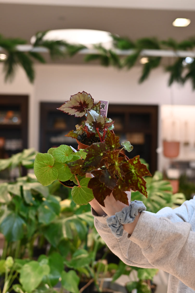 Begonia thrive in medium to bright, filtered light. They prefer their soil to be consistently moist, so water when the soil is dry about 2" from the top of the pot. Keep them in a chunky potting mix.