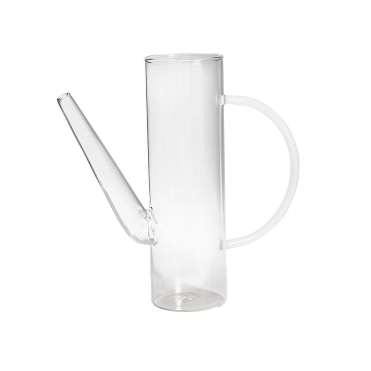 Delicate glass watering can with white glass handle and elegant spout makes a perfect decorative or useful piece for every floral design.