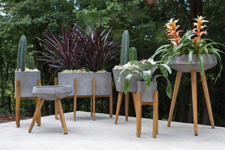 This classy Berlin Planter, in a combination of concrete and oak, offers a fresh modern option for indoor or outdoor plants.