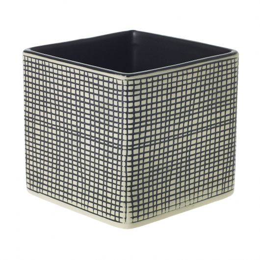 The Checkered cube is glazed in black, then scratched for a modern yet subtle design.