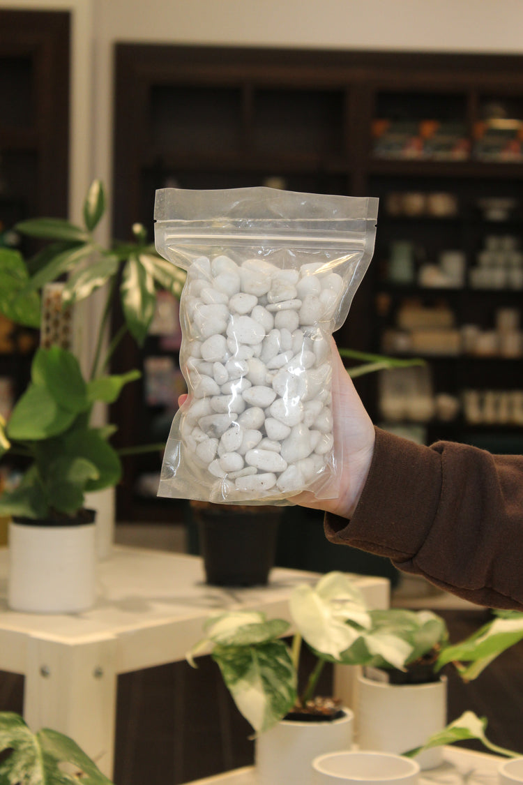 A neutral, modern choice with a waxed, lightly glossy finish, these eco-friendly, non-toxic stones are ideal for embellishing plants in vases, decorative pots, aquariums, or terrariums.