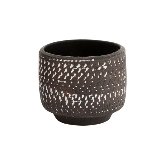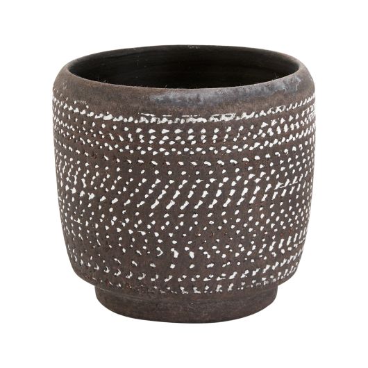 The Delrado Pot is handmade from terracotta and hand-glazed for a textured patterned look, and features a clean silhouette with a subtle footed design. Made to fit a 4" or 5" drop-in pot, respectively.