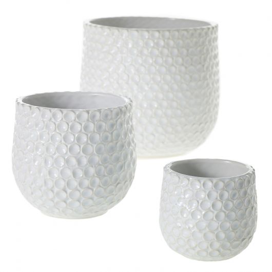 The Ginny Pot features a simple silhouette and a beautiful white textural glazed finish.