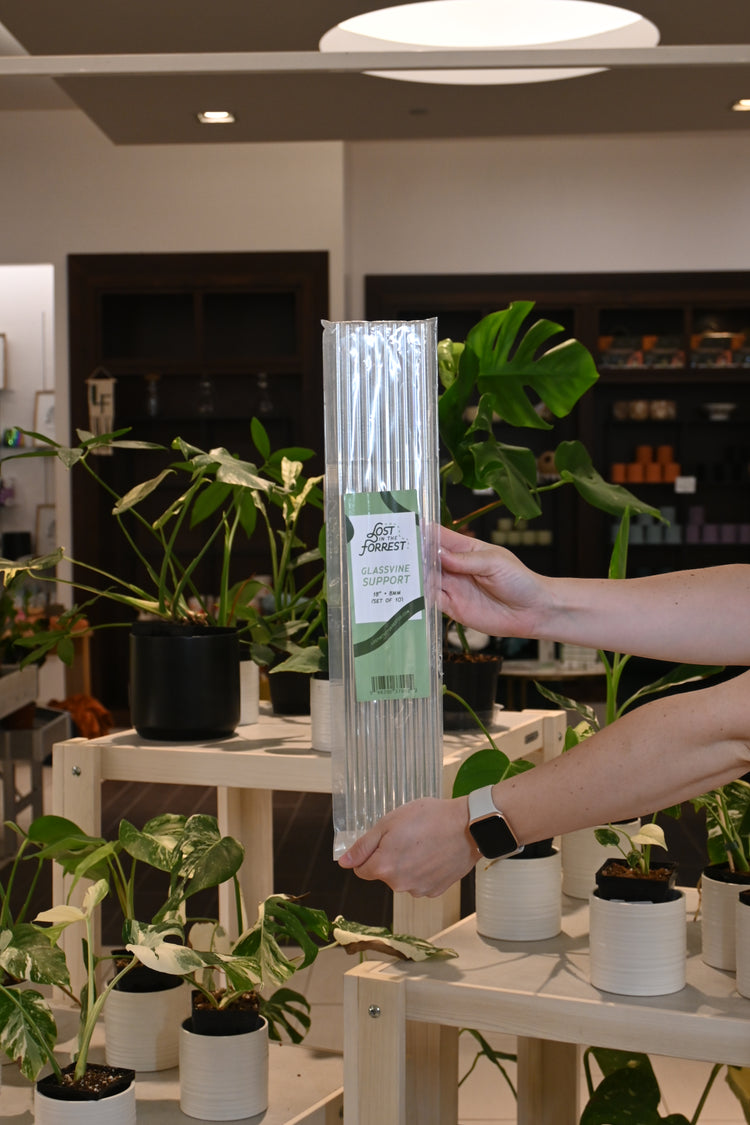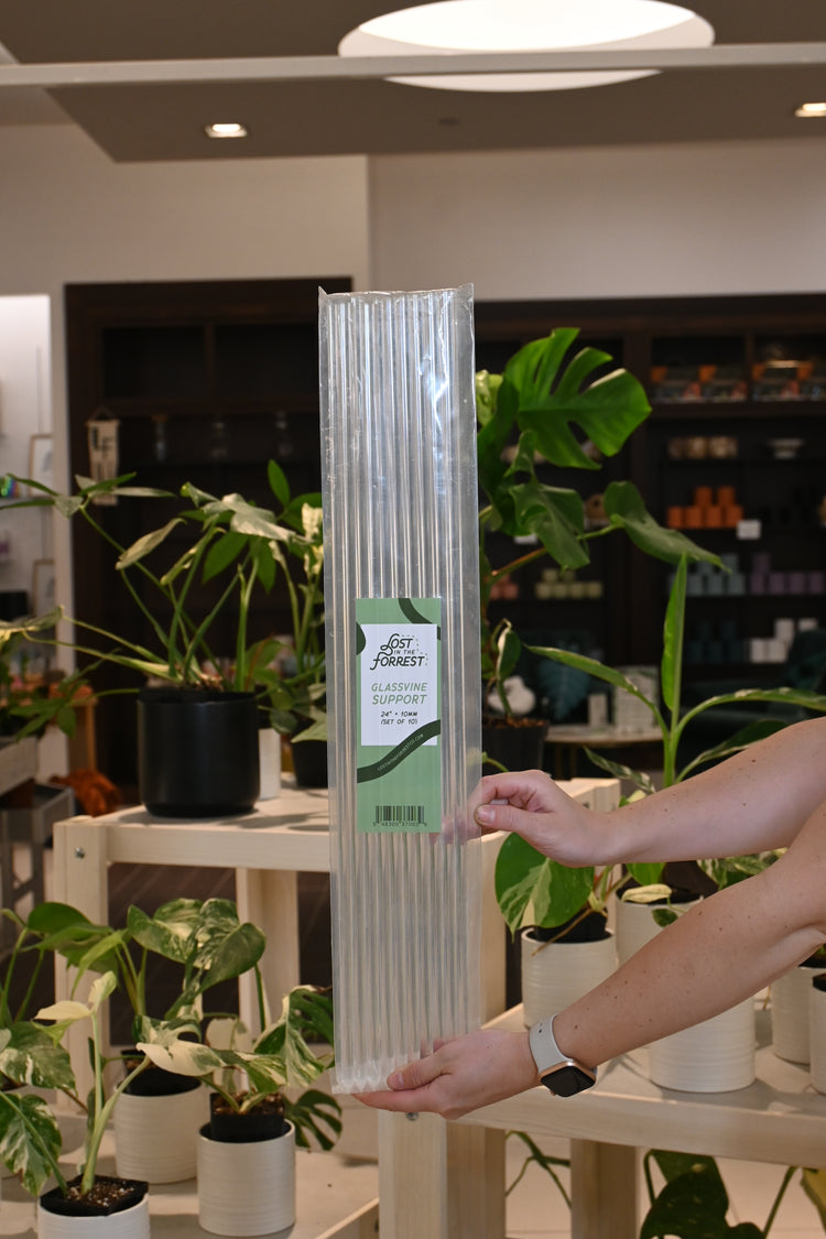 Elevate your plants with Glassvine Support's sturdy acrylic pole. Clear and durable, this reliable 6-8mm thick support provides effortless plant care without distracting from natural beauty. Available in 12, 18, and 24 inch heights. Each package includes 10 poles for optimal plant support.