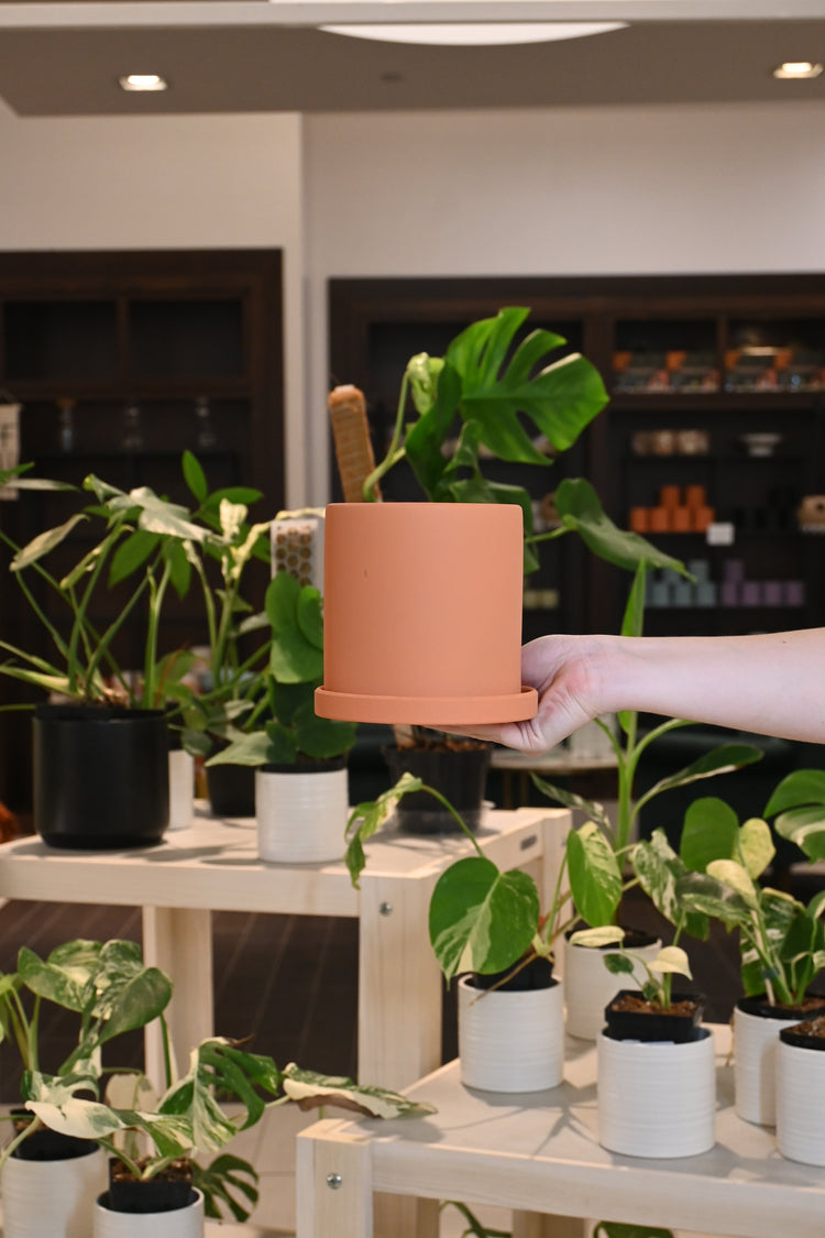 Say hello to the Gordon! Perfect for your smaller plants, this pot comes with a drainage hole for easy watering and a saucer. Keep your plants happy and healthy with this colorful addition to your home decor.