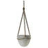 The Hammock Hanging Pot is a modern piece, two-toned in grey and white, glazed and unglazed, comes with rope for hanging.