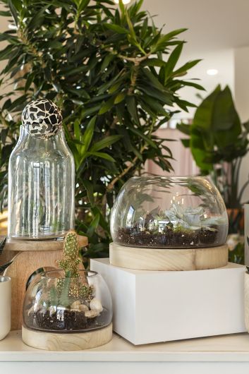 An open glass terrarium on a sleek wooden base, the Jonah Terrarium is a unique backdrop for your stylish designs. Fill it with plants, succulents, and accessories to build an entire world inside.