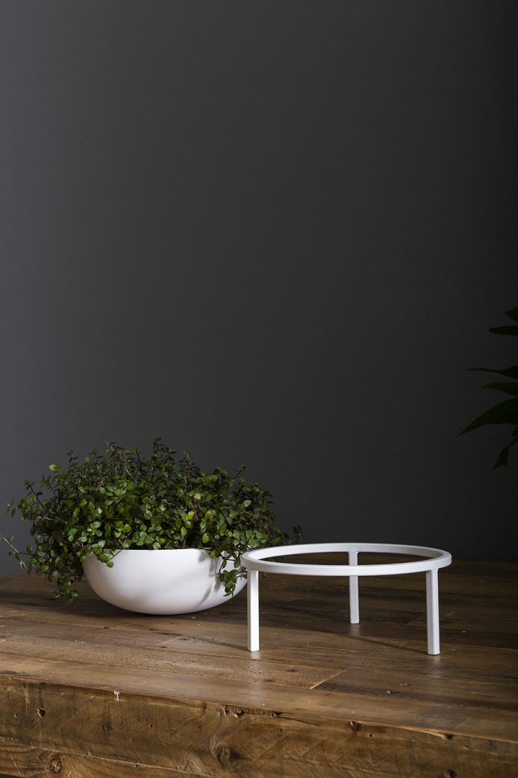 The Katy Plant Stand features a modern bowl and stand in a fresh matte white, perfect for raising the bar in style for every plant.
