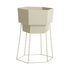 The Lore Plant Stand features a plastic pot in a geometric silhouette for a smooth modern look, on a matching welded and powder-coated stand.