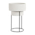 The Moa Plant stand is a modern addition to your collection, featuring a lightweight polyresin pot in an iron stand. It is designed for outdoor use, frost-resistant, and features a drainage hole for ease of use.