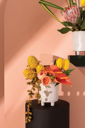 An etched pattern and three feet make this simple white pot a step above ordinary. The Morrow Footed Pot offers a modern look for every plant, perfect for adding style to your home in fresh glazed white ceramic. Designed to fit a 6” drop-in pot, the Morrow Footed Pot makes it easy to add botanicals to your everyday.