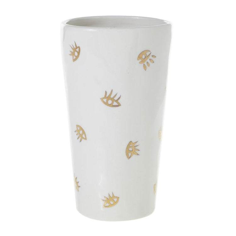 The hand-drawn eye design in gold of the Mystic Vase draws on ancient symbolism to offer a bold yet understated piece for your home or event.