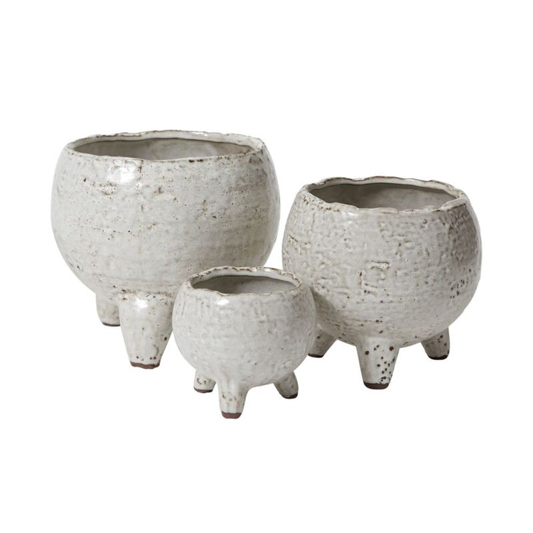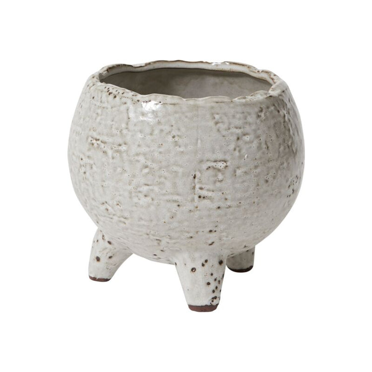 The cutie Noah Pot in ceramic features three felted feet, a taupe glazed finish, and a round silhouette for a simple and modern look.