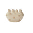 Add a fresh, feminine look to everyday or event displays with the ceramic 2-piece Petunia Budvase. Featuring a rounded silhouette, glossy finish, & natural bisque flowers peeking through the creamy glaze, this hand painted playful oval tulipiere-style vessel makes a fun statement with a few stems in the 4 openings. The lid lifts off for easy arranging, water filling, & cleaning. Layer with the other Petunia Vase for a delightful display.