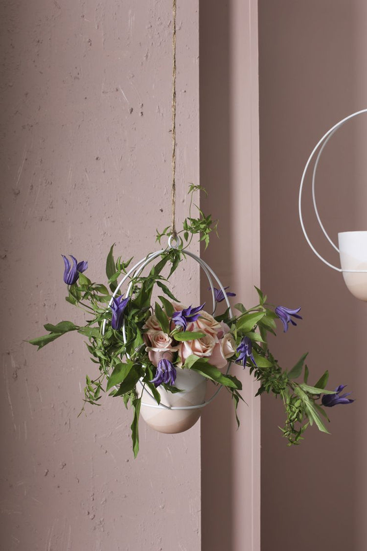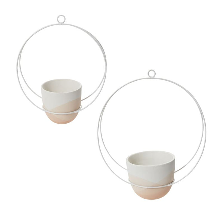 The simple silhouette of the Raine Hanging Planter combines with a stylish ombre finish and a wide white metal rounded hanger to make a stunning backdrop for all your hanging plants.