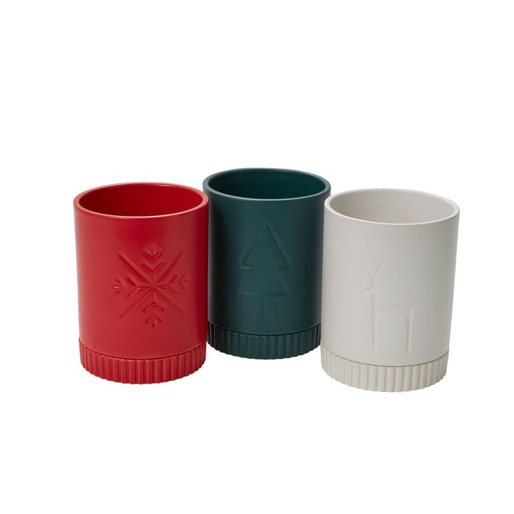 The modern simplicity of the Rowan Pot captures the essence of a Hygge styled holiday. A unique holidy decoration, the Rowan is a minimalist cylinder with winter design and matte finish, that rests on a ribbed saucer.