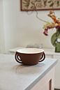 With 2 layered, curved handles and an artisanal, sculptural sensibility, the small, versatile Seneca Pot is ideal for floral arrangements or a drop-in plant. A warm, brown terracotta tone and white interior glaze give this statement piece a nice contrast & color pairing that is easy to layer with other home decor.