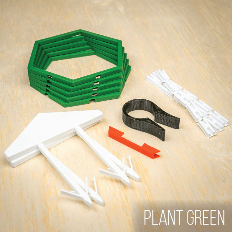 Customize your own unique trellis for your unique plants! Each kit includes colored hexagons used to design and build a unique trellis. Trellises can be broken apart and redesigned as plants grow and change. Expansion packs are also available, allowing the trellis to grow with your plant.
