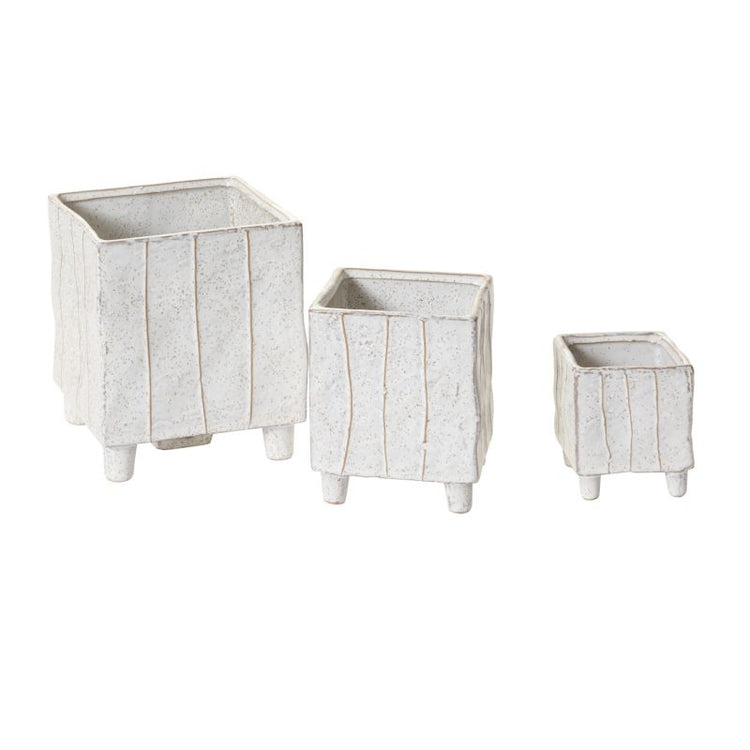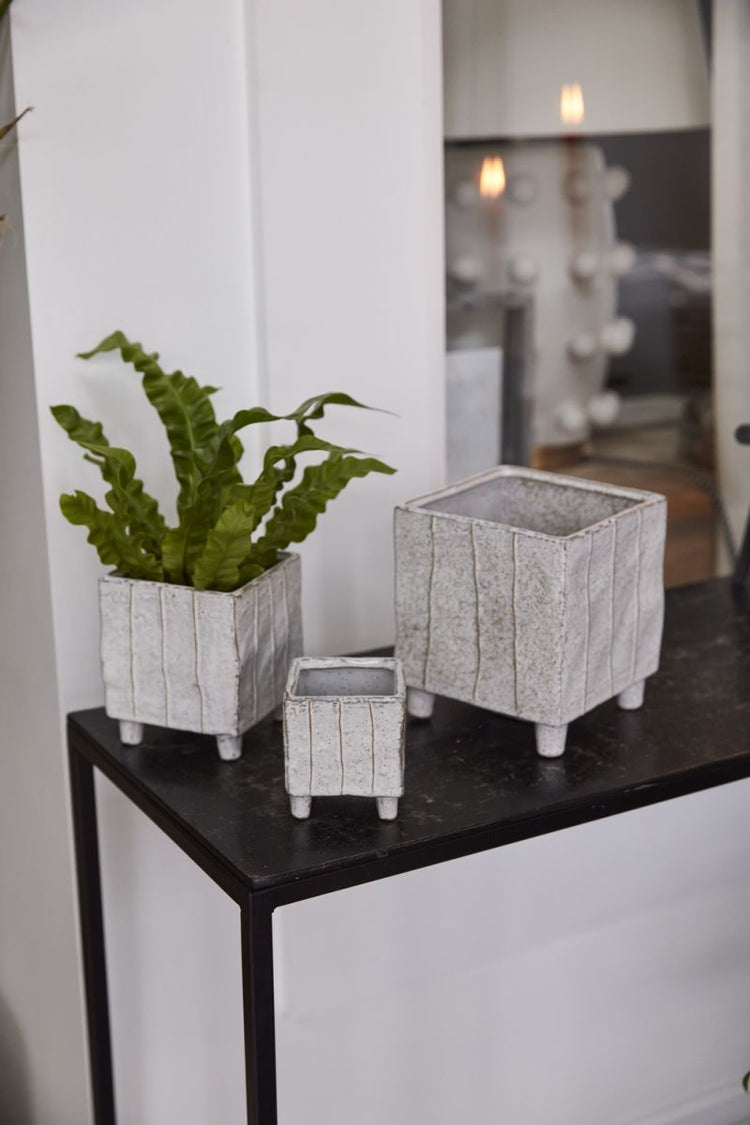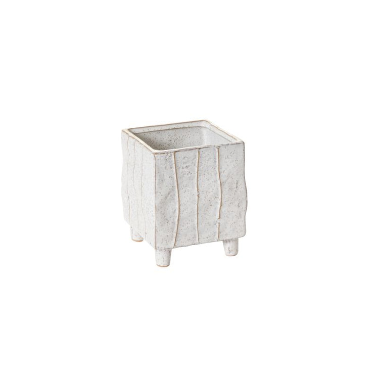 Pop a succulent or small floral arrangement into the ceramic Tarragona Square Pot. Dimensional ridges, tiny feet & color variation from the off-white reactive glaze add a handmade sensibility to this delightful mini pot.