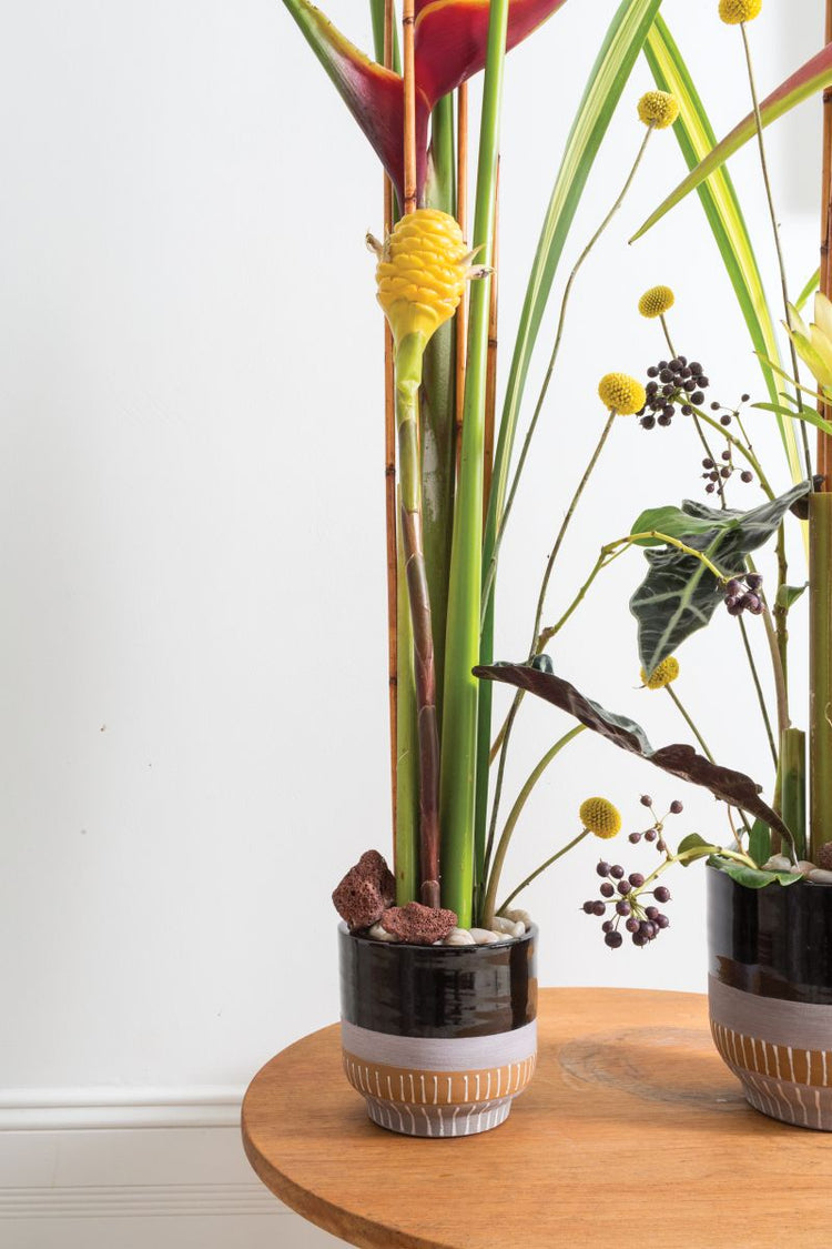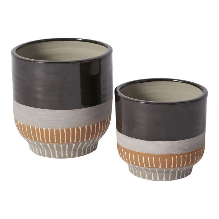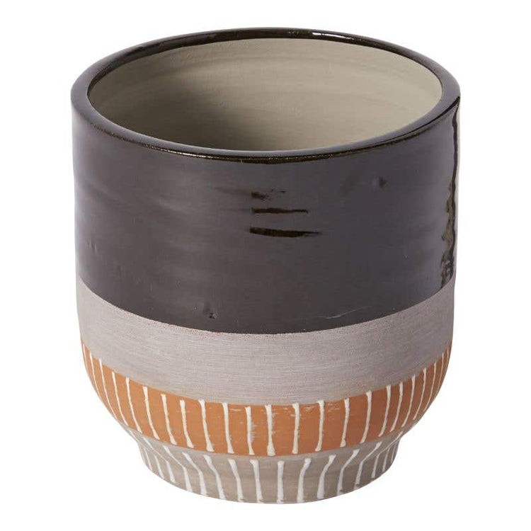 The Ticki Pot incorporates a neutral yet bold color palette with hand painted white line texture for a perfect balance of detail and simplicity.