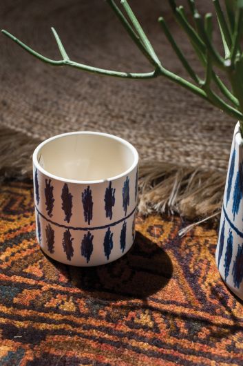 A simple shape and hand-painted design in blue combine in the playful yet modern Ticco Pot.