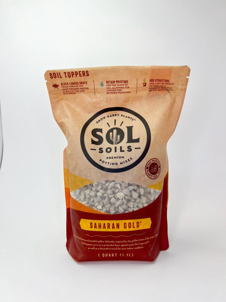 Soil toppers offer a customizable finishing touch to complement all your potted plants. Our Saharan Gold topper features beautiful yellow dolomite, inspired by the golden hues of the Sahara Desert. Toppers serve as a protective layer against bugs and other pests, as well as a decorative flair for your favorite plants.