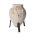 Reminiscent of ancient pottery, the Tuscan Plant Stand includes a cement vase atop an iron three legged stand. Color variations occur within each handmade vase.