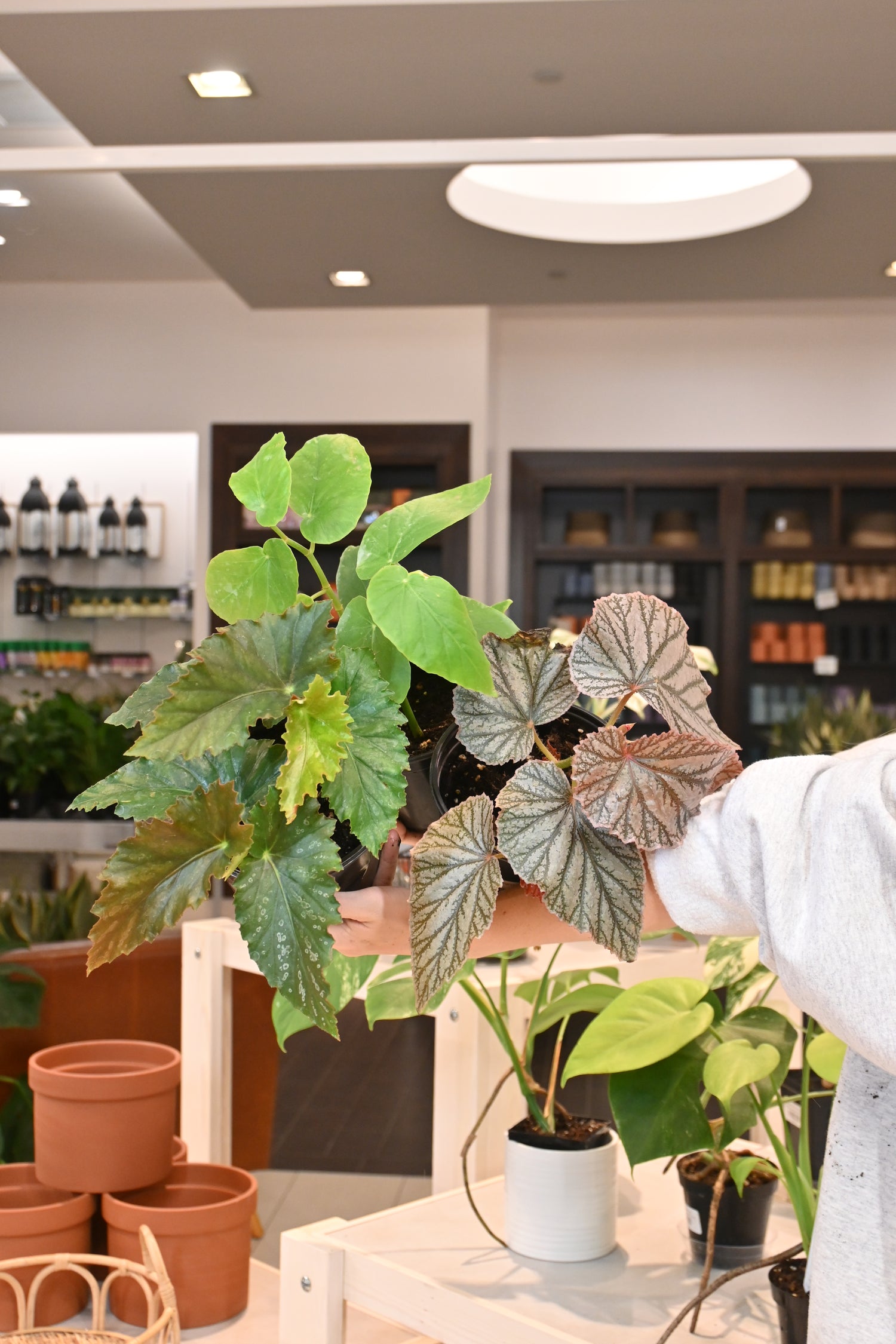 Begonia thrive in medium to bright, filtered light. They prefer their soil to be consistently moist, so water when the soil is dry about 2" from the top of the pot. Keep them in a chunky potting mix.