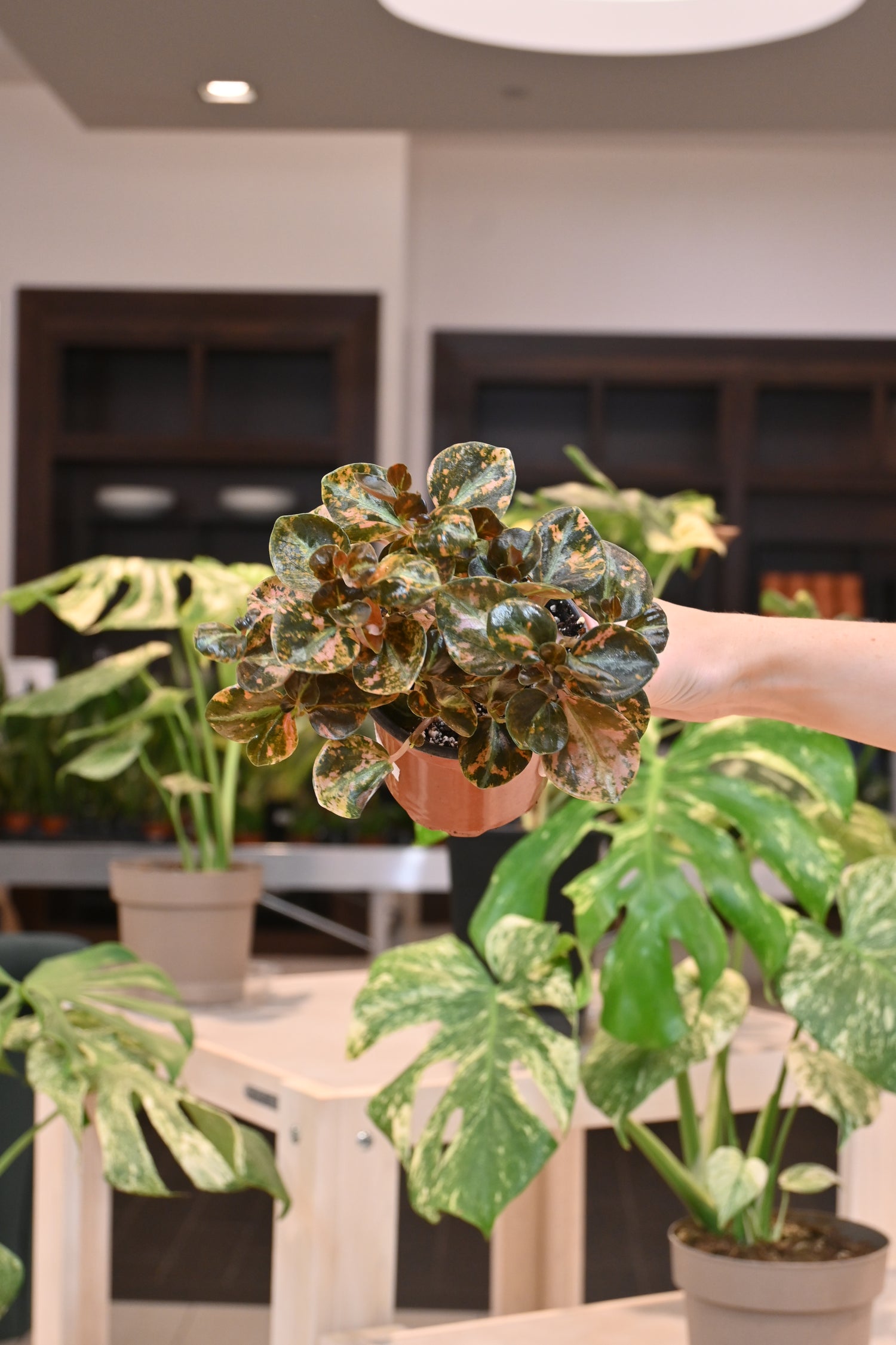 Peperomia plants crave high humidity and lots of sunlight! Keep them in a chunky potting mix and allow it to dry out between waterings.