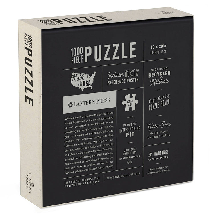 Our Premium 1000 Piece Puzzles feature artwork on quality materials in vibrant full color. We use eco-friendly ink and packaging, FSC certified paper, recycled materials, sourced responsibly and planet friendly. Made in USA, supporting domestic production.